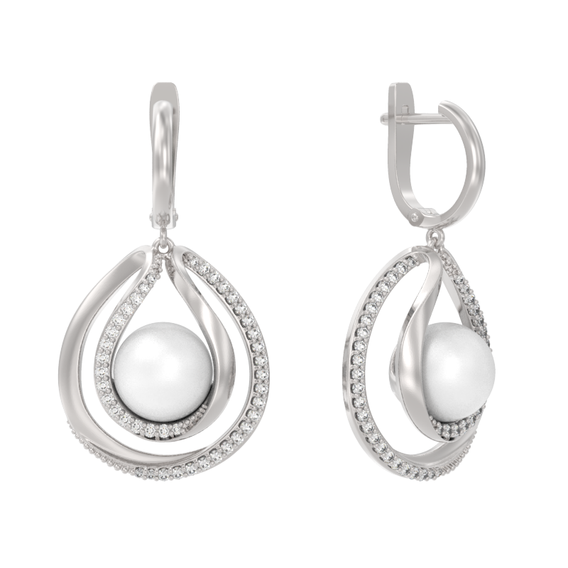 Серебряные cерьги висячие с жемчугом, артикул 169033 по цене 8490 руб. в наличии в салонах Город Золотой. Изделие имеет внешний вид "С подвесом", белый цвет, весом 10,92 грамм.