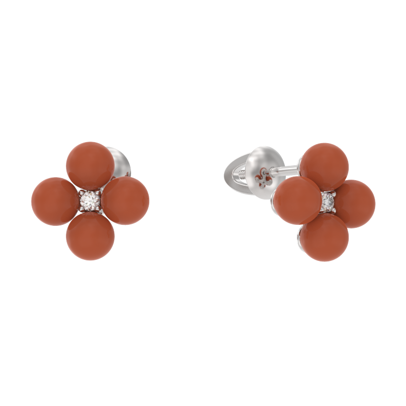 Серебряные cерьги пусеты (гвоздики) с кораллом, артикул 169212 по цене 4390 руб. в наличии в салонах Город Золотой. Изделие имеет внешний вид "Классика/узор", белый цвет, весом 2,36 грамм.