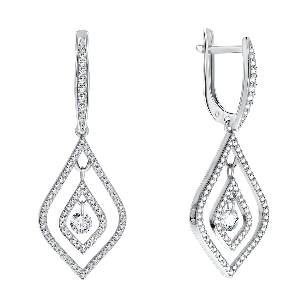 Серебряные cерьги висячие с фианитом, артикул 169363 по цене 6990 руб. в наличии в салонах Город Золотой. Изделие имеет внешний вид "С подвесом", белый цвет, весом 5,82 грамм.