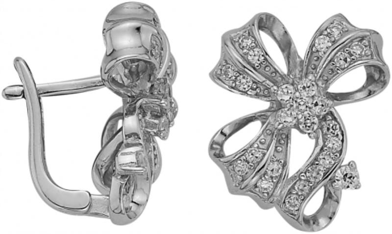 Серебряные cерьги классические с фианитом, артикул 115153 по цене 3590 руб. в наличии в салонах Город Золотой. Изделие имеет внешний вид "Классика/узор", белый цвет, весом 9,2 грамм.