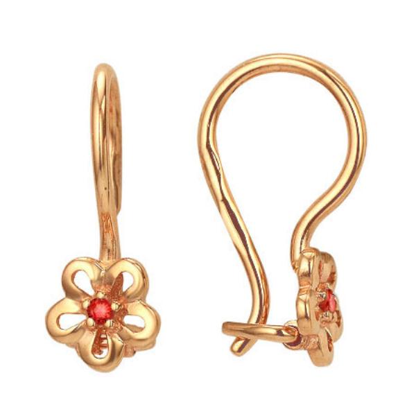 Золотые cерьги классические с фианитом, артикул 169600 по цене 11197 руб. в наличии в салонах Город Золотой. Изделие имеет внешний вид "Классика/узор", красный цвет, весом 0,97 грамм.