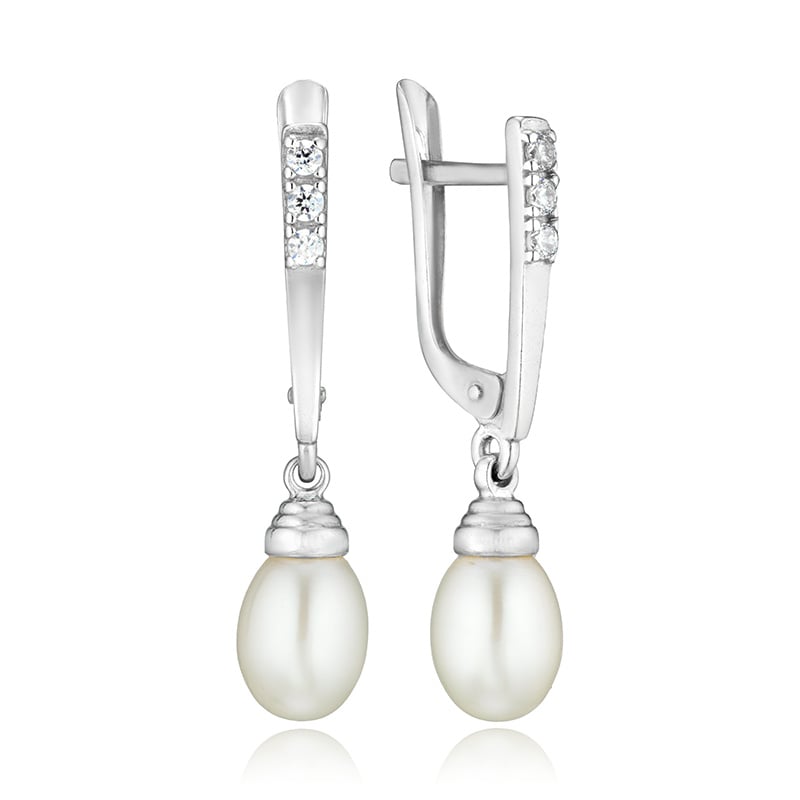 Серебряные cерьги висячие с жемчугом, артикул 171509 по цене 3390 руб. в наличии в салонах Город Золотой. Изделие имеет внешний вид "С подвесом", белый цвет, весом 2,5 грамм.
