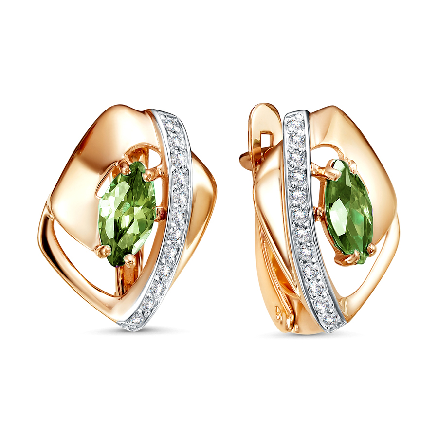 Золотые cерьги классические с хризолитом, артикул 172205 по цене 32897 руб. в наличии в салонах Город Золотой. Изделие имеет внешний вид "Классика/узор", красный цвет, весом 2,74 грамм.