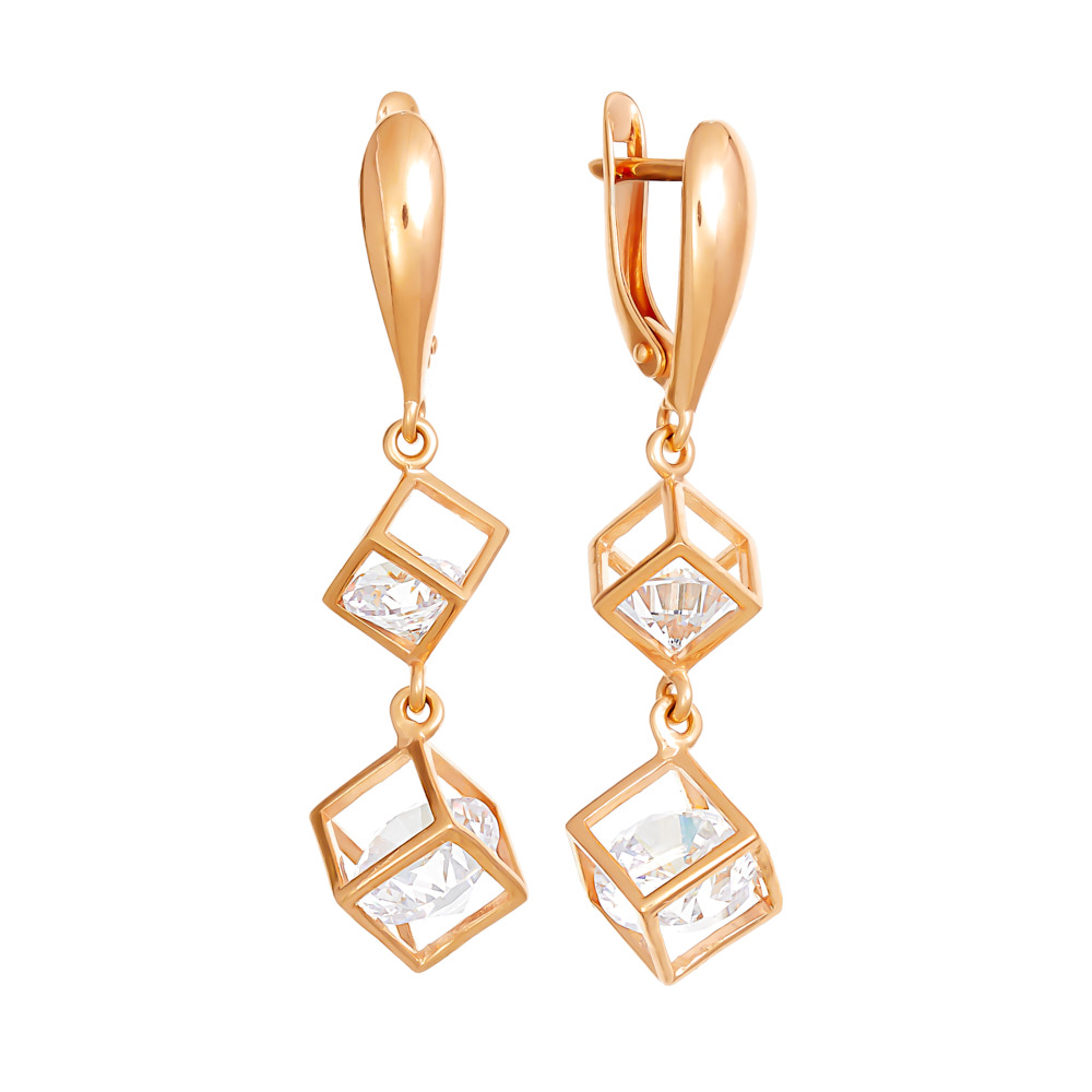 Серебряные cерьги висячие с позолотой с фианитом, артикул 174400 по цене 5617 руб. в наличии в салонах Город Золотой. Изделие имеет внешний вид "С подвесом", белый цвет, весом 5,67 грамм.