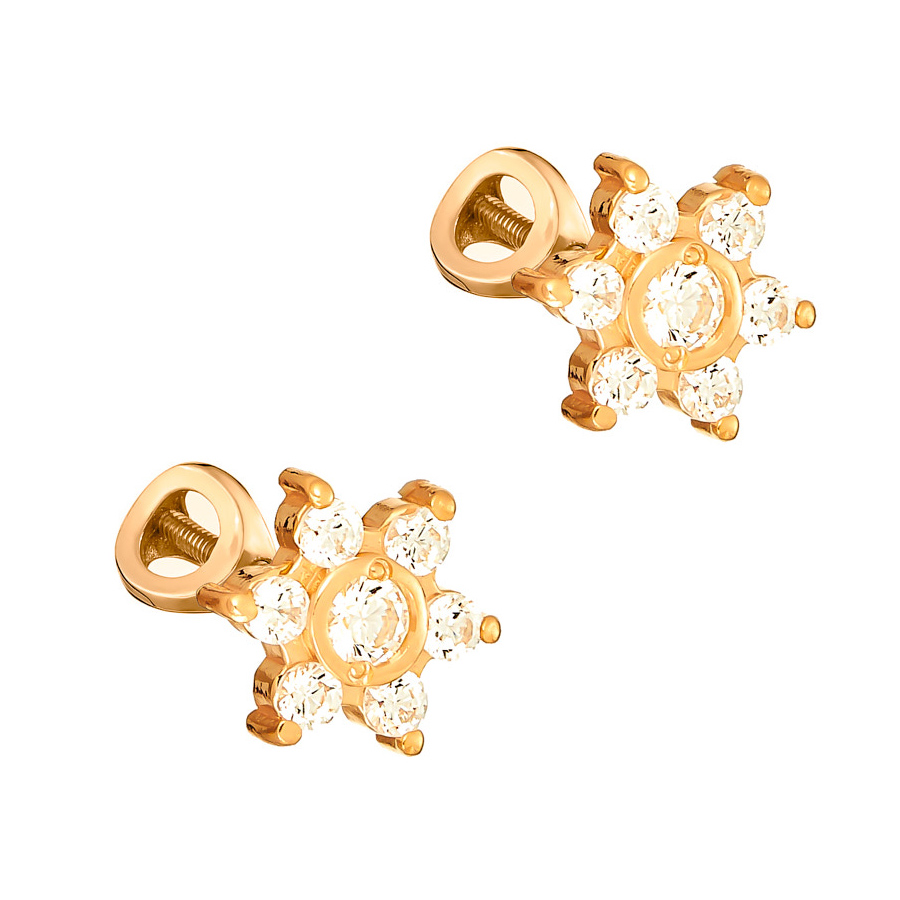 Серебряные cерьги пусеты (гвоздики) с позолотой с фианитом, артикул 174406 по цене 1390 руб. в наличии в салонах Город Золотой. Изделие имеет внешний вид "Классика/узор", белый цвет, весом 1,26 грамм.