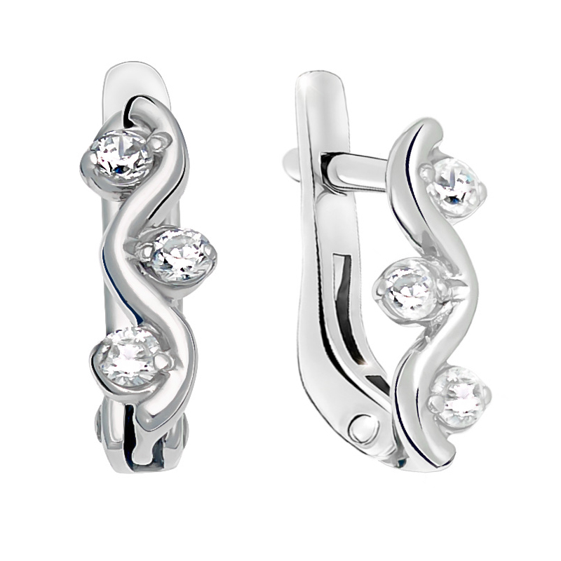 Серебряные cерьги классические с фианитом, артикул 174392 по цене 2030 руб. в наличии в салонах Город Золотой. Изделие имеет внешний вид "Классика/узор", белый цвет, весом 1,21 грамм.
