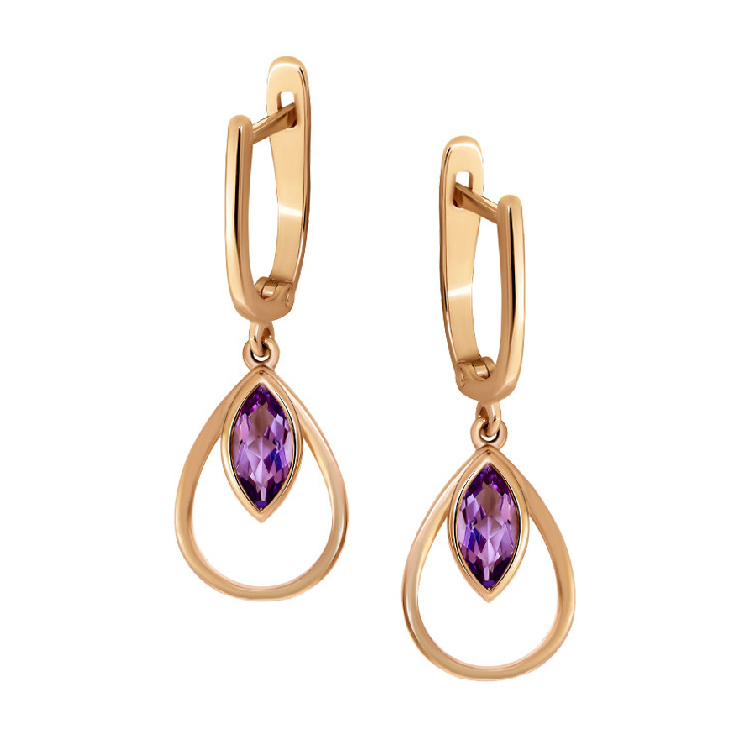 Золотые cерьги висячие с аметистом, артикул 174704 по цене 91347 руб. в наличии в салонах Город Золотой. Изделие имеет внешний вид "С подвесом", красный цвет, весом 3,5 грамм.
