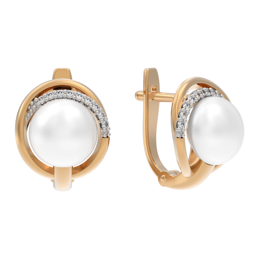 Золотые cерьги классические с жемчугом, артикул 174639 по цене 108847 руб. в наличии в салонах Город Золотой. Изделие имеет внешний вид "Классика/узор", красный цвет, весом 4,39 грамм.