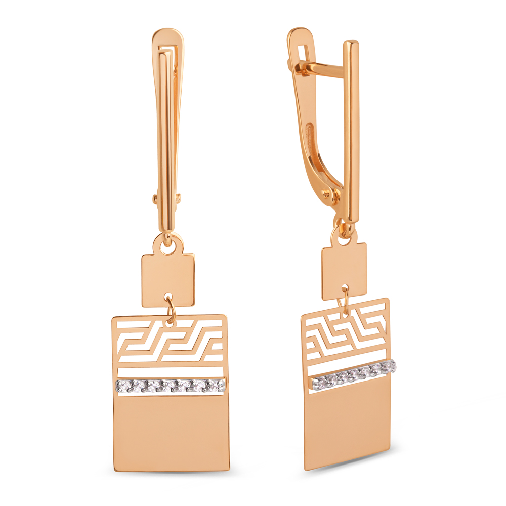 Золотые cерьги висячие с фианитом, артикул 175134 по цене 38245 руб. в наличии в салонах Город Золотой. Изделие имеет внешний вид "С подвесом", красный цвет, весом 2,26 грамм.