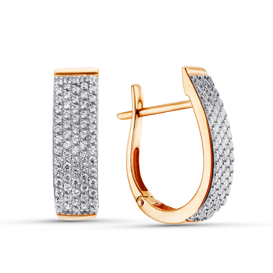 Золотые cерьги с фианитом, артикул 176650 по цене 59847 руб. в наличии в салонах Город Золотой. Изделие имеет внешний вид "Дорожка", красный цвет, весом 3,48 грамм.