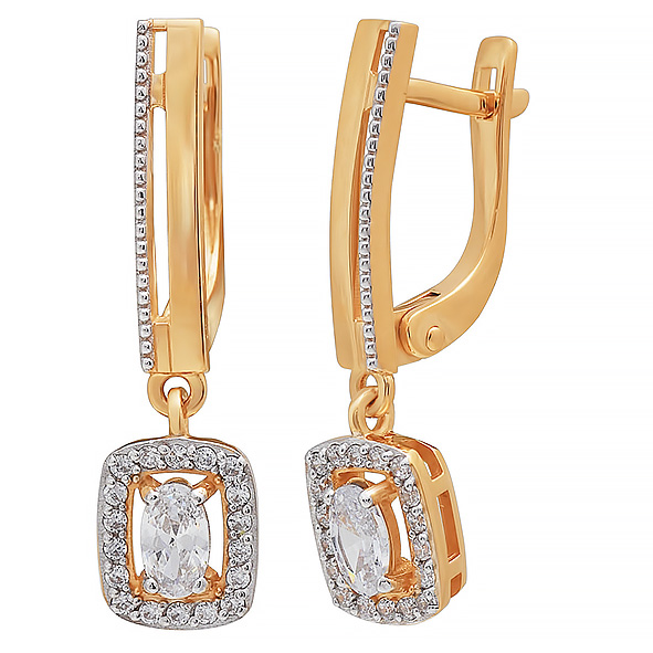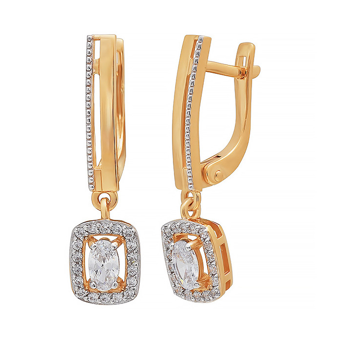 Золотые cерьги висячие с фианитом, артикул 176488 по цене 51716 руб. в наличии в салонах Город Золотой. Изделие имеет внешний вид "С подвесом", красный цвет, весом 2,7 грамм.
