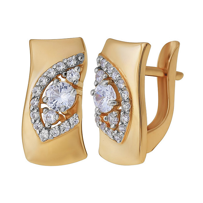 Золотые cерьги классические с фианитом, артикул 176647 по цене 30968 руб. в наличии в салонах Город Золотой. Изделие имеет внешний вид "Классика/узор", красный цвет, весом 1,83 грамм.