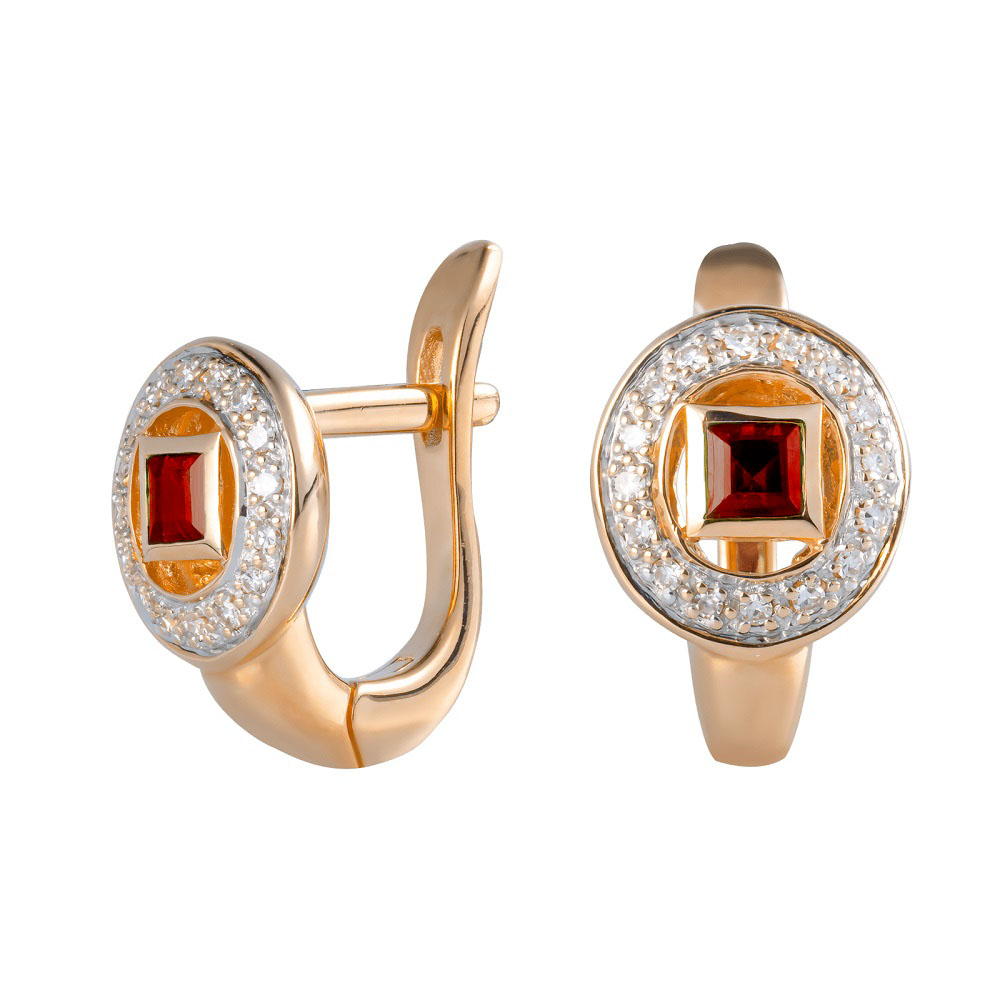 Золотые cерьги классические с гранатом, артикул 176720 по цене 192847 руб. в наличии в салонах Город Золотой. Изделие имеет внешний вид "Классика/узор", красный цвет, весом 6,15 грамм.