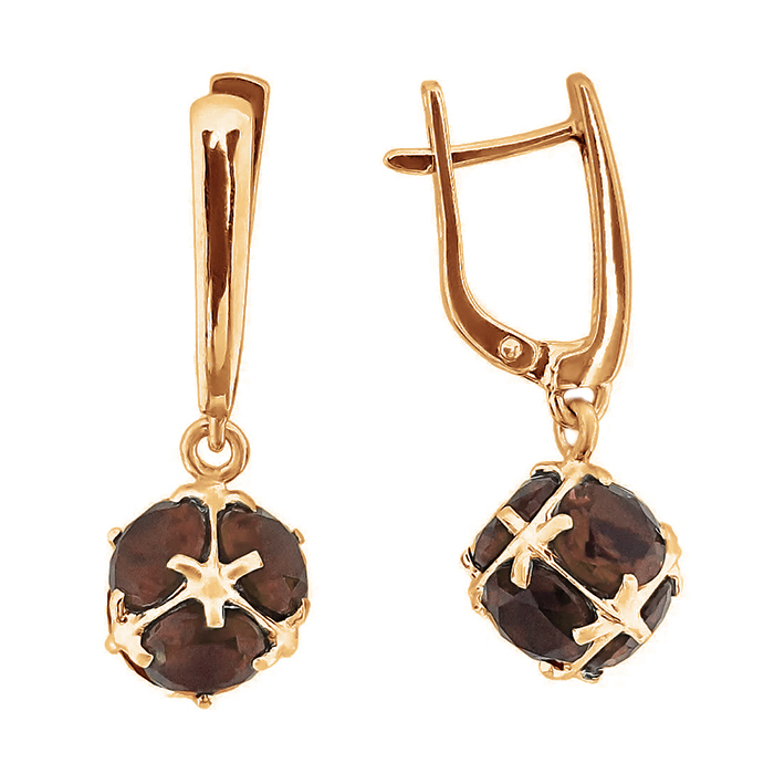 Золотые cерьги висячие с раух-топазом, артикул 177138 по цене 178084 руб. в наличии в салонах Город Золотой. Изделие имеет внешний вид "С подвесом", красный цвет, весом 6,24 грамм.