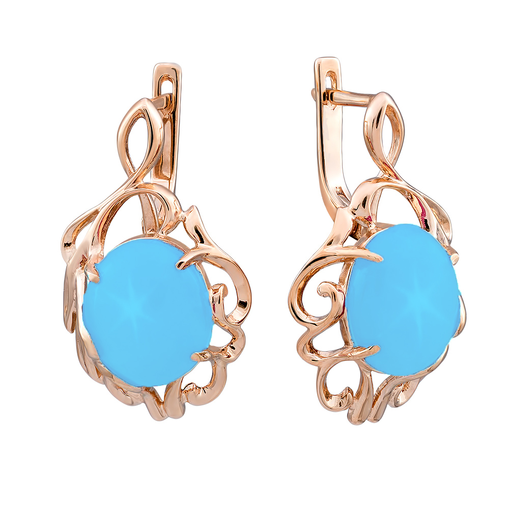 Золотые cерьги классические с бирюзой, артикул 177169 по цене 196977 руб. в наличии в салонах Город Золотой. Изделие имеет внешний вид "Классика/узор", красный цвет, весом 6,66 грамм.