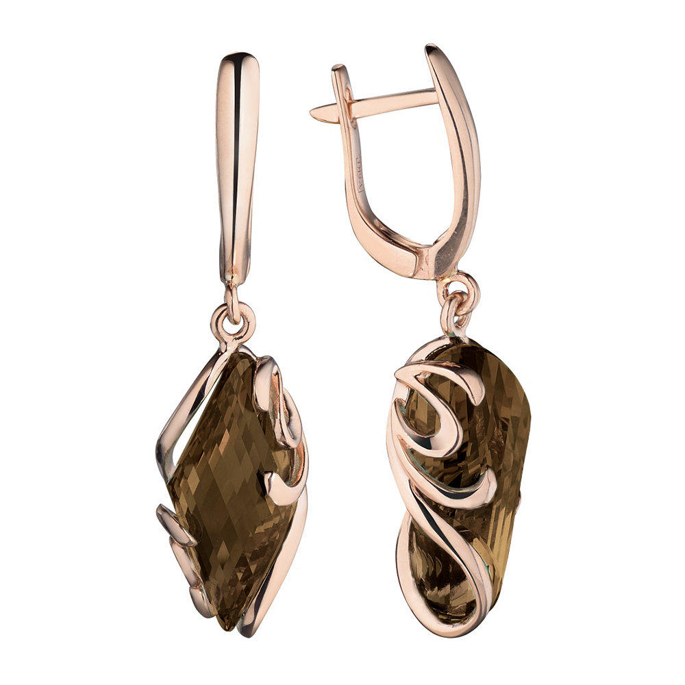 Золотые cерьги висячие с раух-топазом, артикул 175758 по цене 171847 руб. в наличии в салонах Город Золотой. Изделие имеет внешний вид "С подвесом", красный цвет, весом 7,55 грамм.