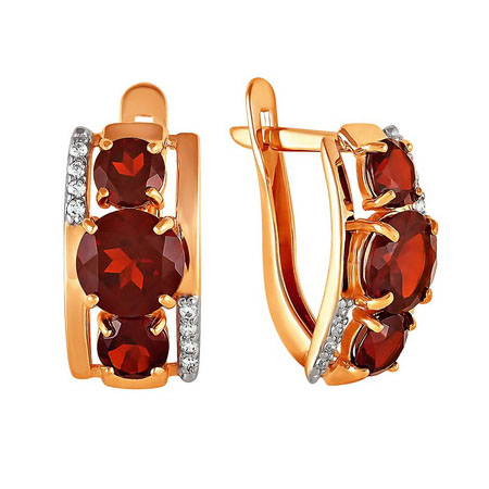 Золотые cерьги классические с гранатом, артикул 177545 по цене 47597 руб. в наличии в салонах Город Золотой. Изделие имеет внешний вид "Классика/узор", красный цвет, весом 2,91 грамм.