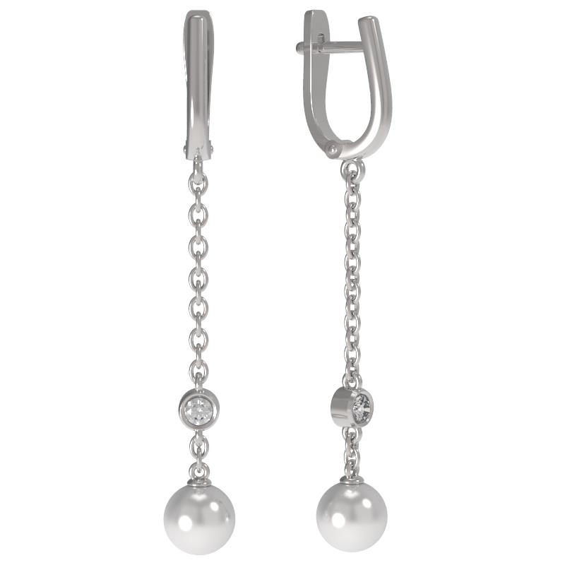 Серебряные cерьги висячие с жемчугом, артикул 177780 по цене 6190 руб. в наличии в салонах Город Золотой. Изделие имеет внешний вид "С подвесом", белый цвет, весом 2,97 грамм.