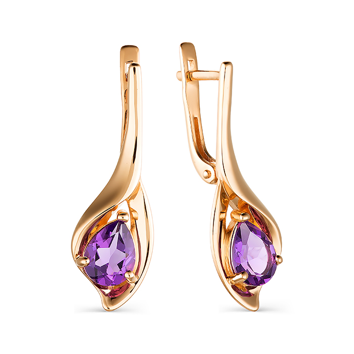 Золотые cерьги висячие с аметистом, артикул 178707 по цене 132535 руб. в наличии в салонах Город Золотой. Изделие имеет внешний вид "С подвесом", красный цвет, весом 3,92 грамм.