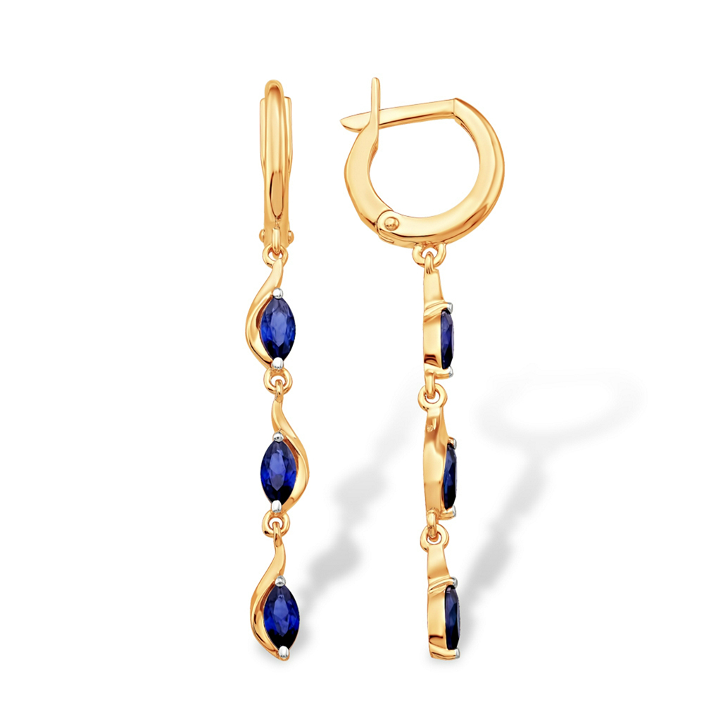 Золотые cерьги висячие с сапфиром, артикул 179668 по цене 44447 руб. в наличии в салонах Город Золотой. Изделие имеет внешний вид "С подвесом", красный цвет, весом 2,75 грамм.