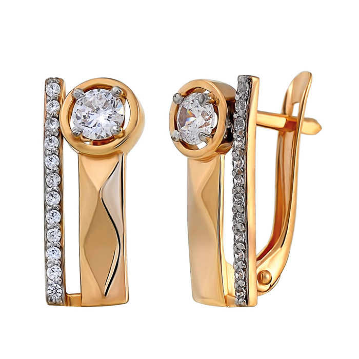 Золотые cерьги классические с фианитом, артикул 179765 по цене 41290 руб. в наличии в салонах Город Золотой. Изделие имеет внешний вид "Классика/узор", красный цвет, весом 2,44 грамм.
