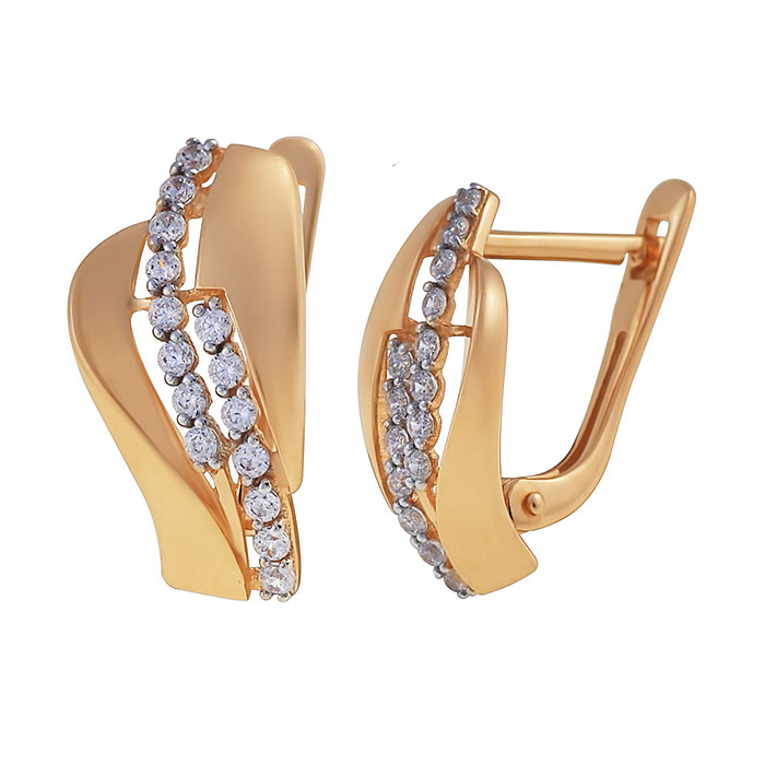 Золотые cерьги классические с фианитом, артикул 179768 по цене 41797 руб. в наличии в салонах Город Золотой. Изделие имеет внешний вид "Классика/узор", красный цвет, весом 2,47 грамм.