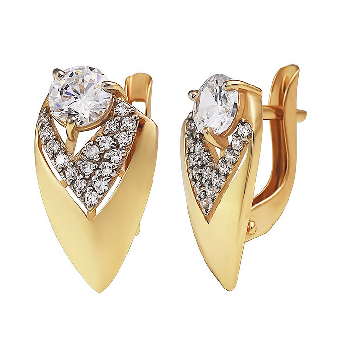 Золотые cерьги классические с фианитом, артикул 179816 по цене 38847 руб. в наличии в салонах Город Золотой. Изделие имеет внешний вид "Классика/узор", красный цвет, весом 2,29 грамм.