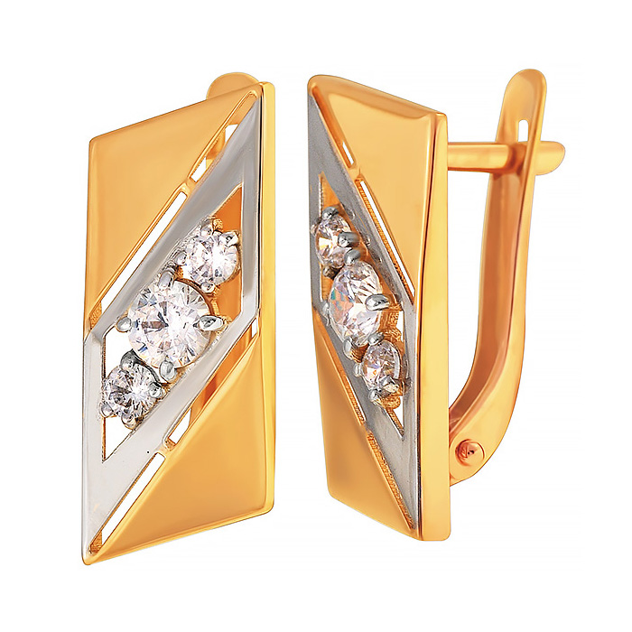 Золотые cерьги классические с фианитом, артикул 179822 по цене 39547 руб. в наличии в салонах Город Золотой. Изделие имеет внешний вид "Классика/узор", красный цвет, весом 2,32 грамм.