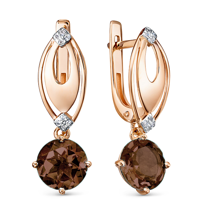 Золотые cерьги висячие с раух-топазом, артикул 178731 по цене 99152 руб. в наличии в салонах Город Золотой. Изделие имеет внешний вид "С подвесом", красный цвет, весом 3,55 грамм.