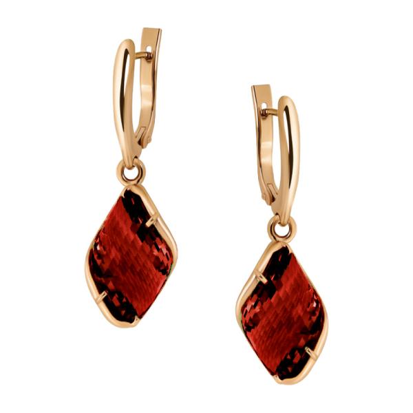 Золотые cерьги висячие с ситалом, артикул 179917 по цене 143847 руб. в наличии в салонах Город Золотой. Изделие имеет внешний вид "С подвесом", красный цвет, весом 7,39 грамм.