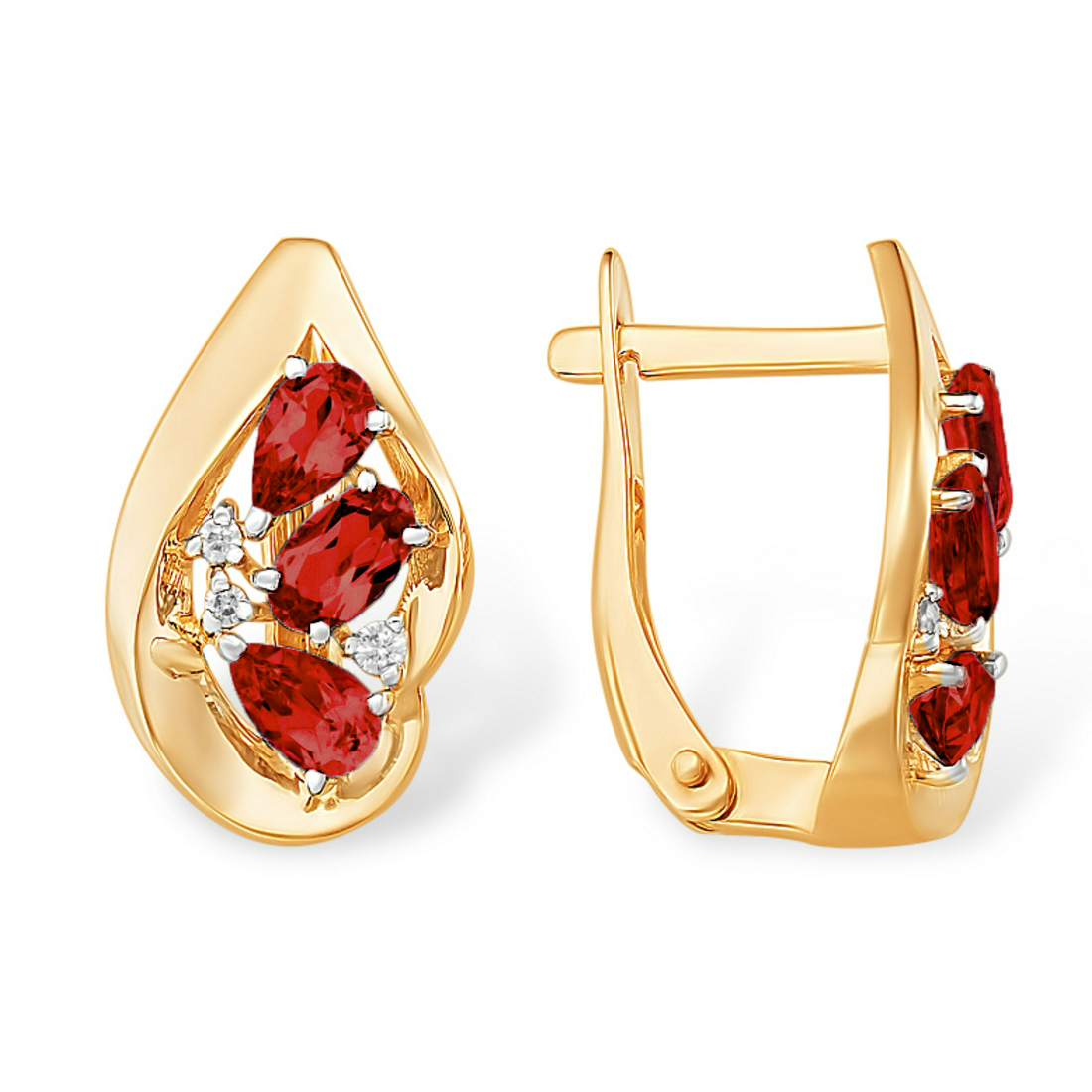 Золотые cерьги классические с гранатом, артикул 179002 по цене 52847 руб. в наличии в салонах Город Золотой. Изделие имеет внешний вид "Классика/узор", красный цвет, весом 3,24 грамм.