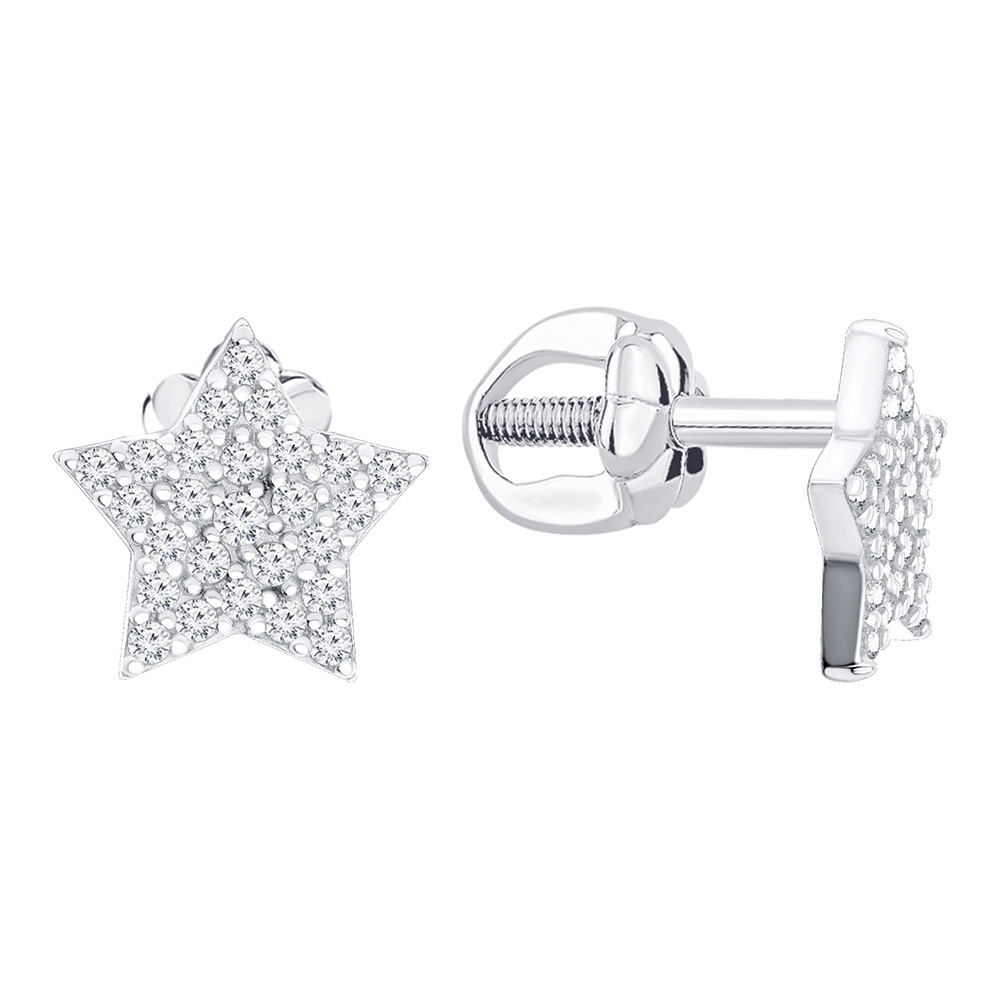 Серебряные cерьги пусеты (гвоздики) с фианитом, артикул 180319 по цене 1590 руб. в наличии в салонах Город Золотой. Изделие имеет внешний вид "Классика/узор", белый цвет, весом 1,35 грамм.