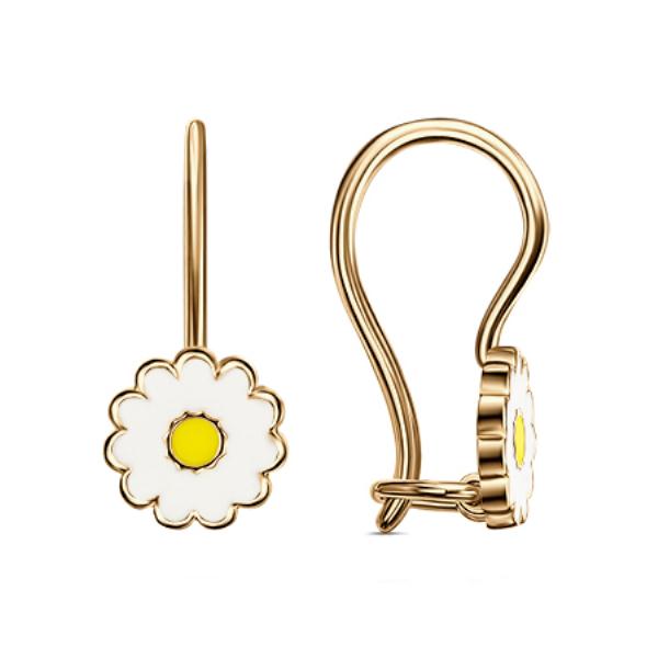Серебряные cерьги классические с позолотой с эмалью, артикул 180614 по цене 1190 руб. в наличии в салонах Город Золотой. Изделие имеет внешний вид "Классика/узор", белый цвет, весом 0,77 грамм.