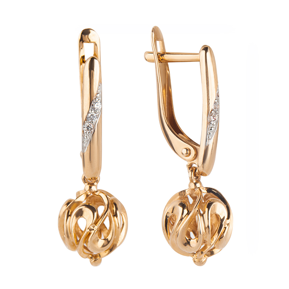 Золотые cерьги висячие с фианитом, артикул 178807 по цене 107054 руб. в наличии в салонах Город Золотой. Изделие имеет внешний вид "С подвесом", красный цвет, весом 3,29 грамм.