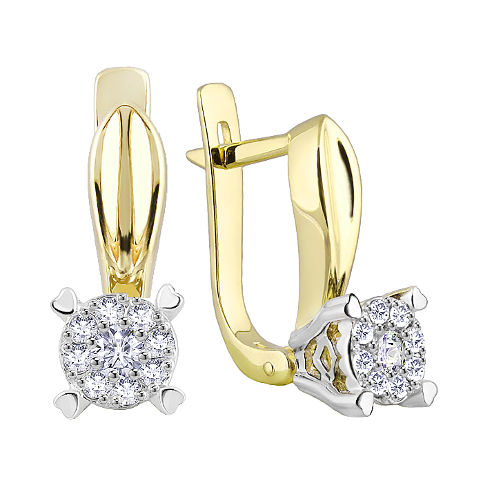 Серьги классические из желтого золота с бриллиантом, артикул 180408 по цене 271810 руб. в наличии в салонах Город Золотой. Изделие имеет внешний вид "Классика/узор", желтый цвет, весом 5,5 грамм.