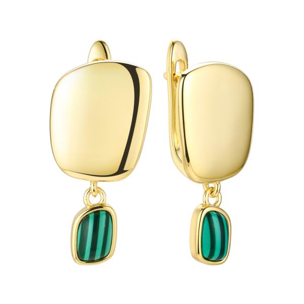 Серебряные cерьги висячие с позолотой с малахитом, артикул 181324 по цене 6490 руб. в наличии в салонах Город Золотой. Изделие имеет внешний вид "С подвесом", белый цвет, весом 4,18 грамм.