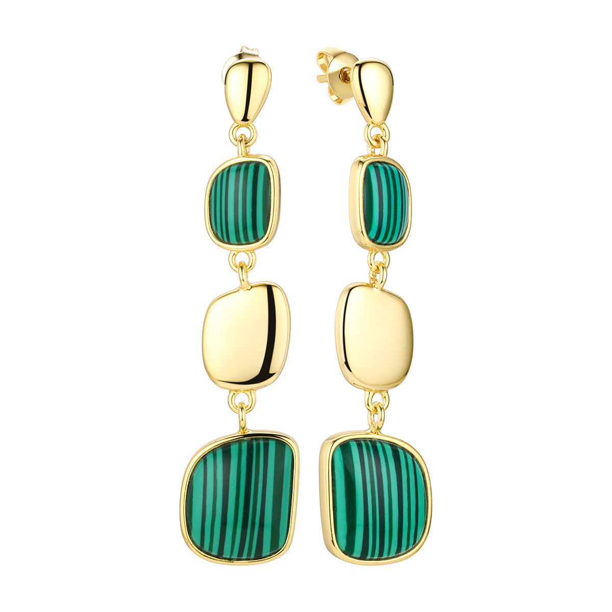 Серебряные cерьги пусеты (гвоздики) с позолотой с малахитом, артикул 181325 по цене 10790 руб. в наличии в салонах Город Золотой. Изделие имеет внешний вид "С подвесом", белый цвет, весом 6,26 грамм.