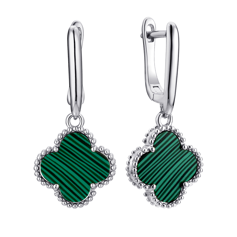 Серебряные cерьги висячие с малахитом, артикул 181235 по цене 7490 руб. в наличии в салонах Город Золотой. Изделие имеет внешний вид "С подвесом", белый цвет, весом 4,4 грамм.