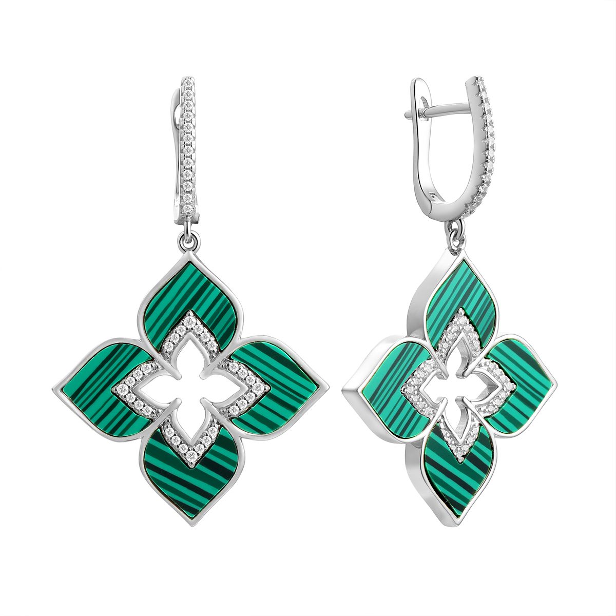 Серебряные cерьги висячие с малахитом, артикул 181476 по цене 12190 руб. в наличии в салонах Город Золотой. Изделие имеет внешний вид "С подвесом", белый цвет, весом 12,31 грамм.