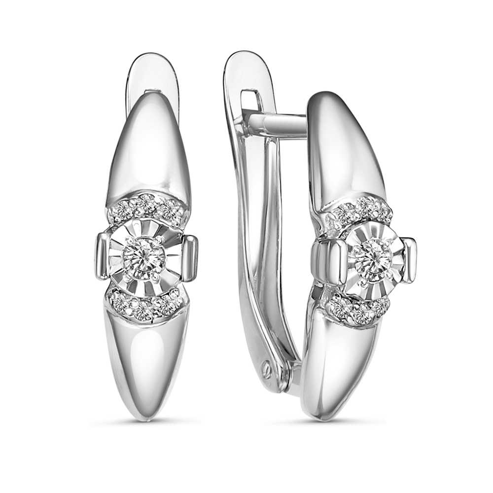 Серьги классические из белого золота с бриллиантом, артикул 181490 по цене 73847 руб. в наличии в салонах Город Золотой. Изделие имеет внешний вид "Классика/узор", белый цвет, весом 2,53 грамм.