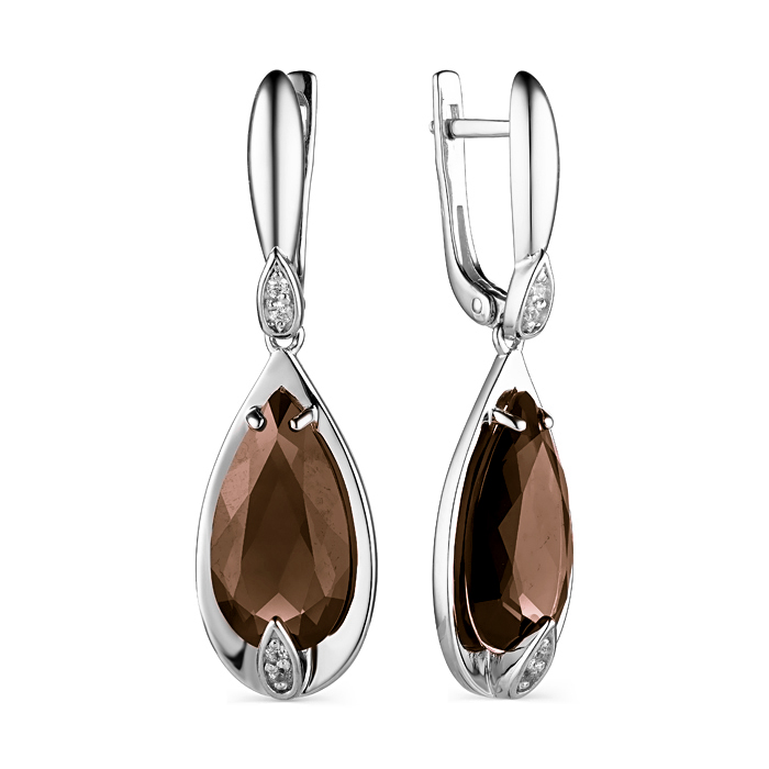Серебряные cерьги висячие с раух-топазом, артикул 182319 по цене 11090 руб. в наличии в салонах Город Золотой. Изделие имеет внешний вид "С подвесом", белый цвет, весом 5,66 грамм.