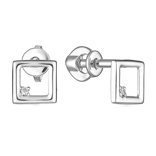 Серебряные cерьги пусеты (гвоздики) с фианитом, артикул 182784 по цене 1670 руб. в наличии в салонах Город Золотой. Изделие имеет внешний вид "Классика/узор", белый цвет, весом 0,85 грамм.