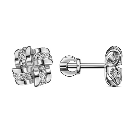 Серебряные cерьги пусеты (гвоздики) с фианитом, артикул 182823 по цене 3780 руб. в наличии в салонах Город Золотой. Изделие имеет внешний вид "Классика/узор", белый цвет, весом 1,93 грамм.