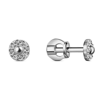 Серебряные cерьги пусеты (гвоздики) с фианитом, артикул 182913 по цене 1790 руб. в наличии в салонах Город Золотой. Изделие имеет внешний вид "Классика/узор", белый цвет, весом 0,84 грамм.