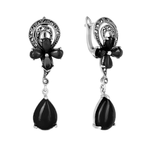 Серебряные cерьги висячие с агатом, артикул 183134 по цене 19490 руб. в наличии в салонах Город Золотой. Изделие имеет внешний вид "С подвесом", белый цвет, весом 10,8 грамм.