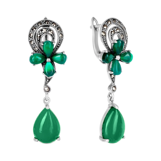 Серебряные cерьги висячие с агатом зеленым, артикул 183288 по цене 19790 руб. в наличии в салонах Город Золотой. Изделие имеет внешний вид "С подвесом", белый цвет, весом 11,07 грамм.