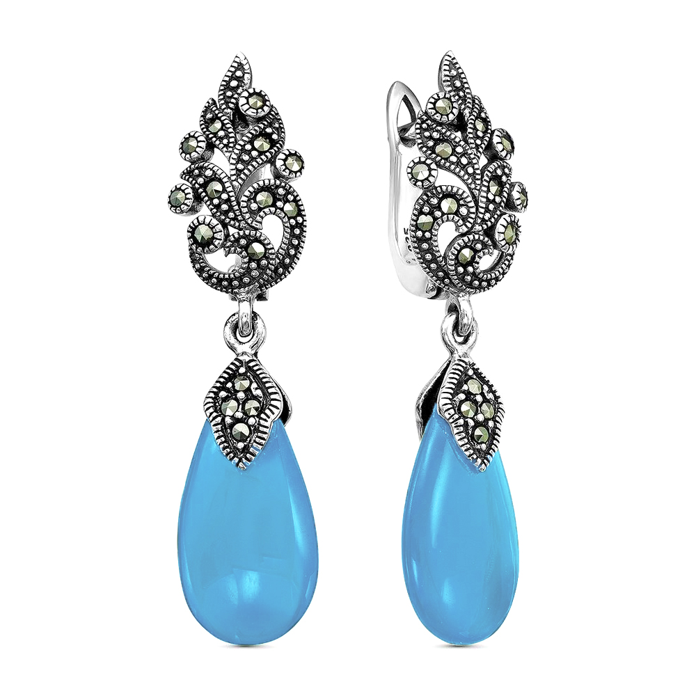 Серебряные cерьги висячие с бирюзой, артикул 183287 по цене 13790 руб. в наличии в салонах Город Золотой. Изделие имеет внешний вид "С подвесом", белый цвет, весом 6,66 грамм.