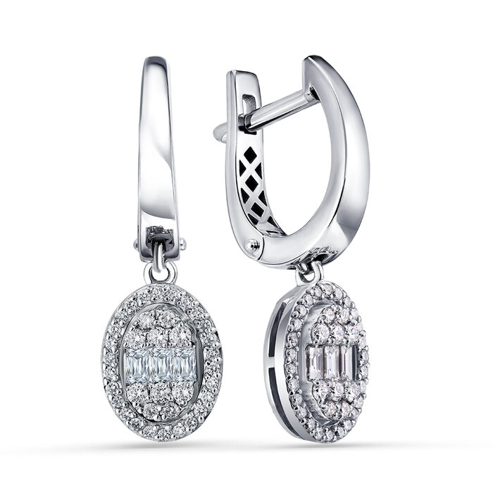 Серьги висячие из белого золота с бриллиантом, артикул 171903 по цене 262847 руб. в наличии в салонах Город Золотой. Изделие имеет внешний вид "С подвесом", белый цвет, весом 4,81 грамм.