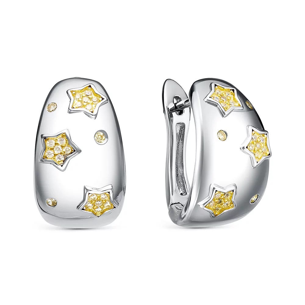 Серебряные cерьги классические с позолотой с фианитом, артикул 183408 по цене 6990 руб. в наличии в салонах Город Золотой. Изделие имеет внешний вид "Классика/узор", белый цвет, весом 7,45 грамм.