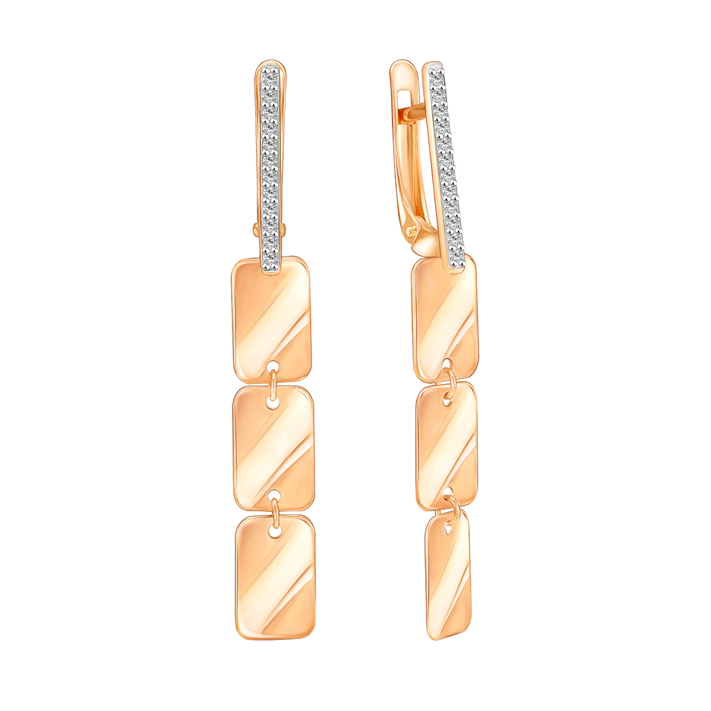 Золотые cерьги висячие с фианитом, артикул 184154 по цене 43747 руб. в наличии в салонах Город Золотой. Изделие имеет внешний вид "С подвесом", красный цвет, весом 2,46 грамм.